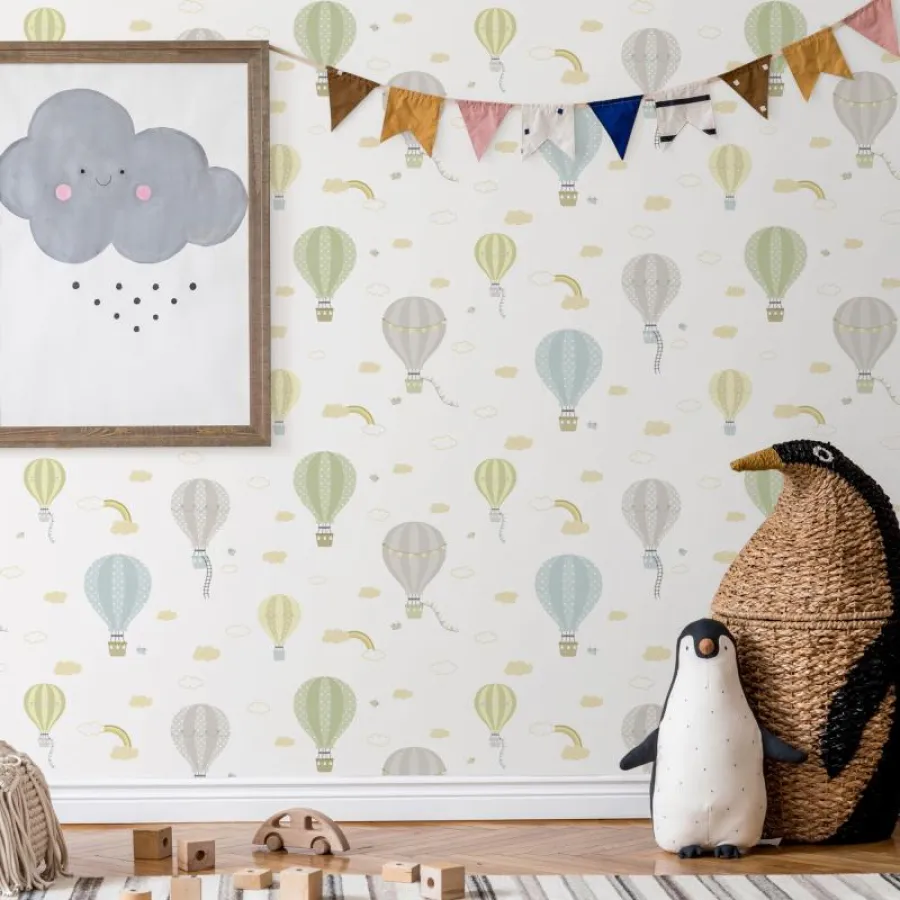 Bulutların arasında süzülen uçan balonlar ve yumuşak gökkuşağı detaylarıyla tasarlanan Adawall ADAKIDS 8901 Serisi, çocuk odalarına masalsı bir gökyüzü atmosferi kazandırır. Pastel renk paleti ve sade illüstrasyon dili sayesinde mekânda sakin, güven veren ve hayal gücünü besleyen bir arka plan oluşturur.