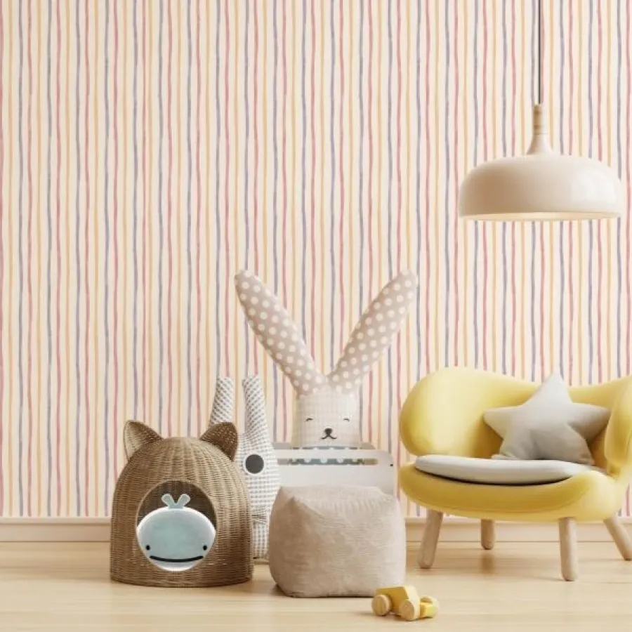 Doğal fırça dokusunu andıran çizgiler, çocukların hayal gücünü destekleyen sıcak bir arka plan oluşturur. Minimal ve uyumlu renk geçişleri sayesinde hem modern hem de klasik çocuk odası dekorasyonlarıyla rahatlıkla eşleşir.