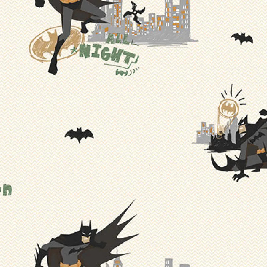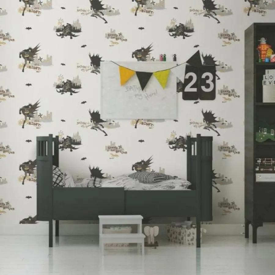 Kahramanlık temasını daha yumuşak ve dengeli bir grafik dille sunan Adawall ADAKIDS 8918 Serisi, Batman figürlerini açık zemin tonlarıyla bir araya getirerek çocuk odalarında hem eğlenceli hem de ferah bir atmosfer oluşturur. Şehir siluetleri, yarasa figürleri ve çizgi roman detayları mekânda macera hissini korurken sade zemin dokusu sayesinde göz yormayan bir görünüm sunar.