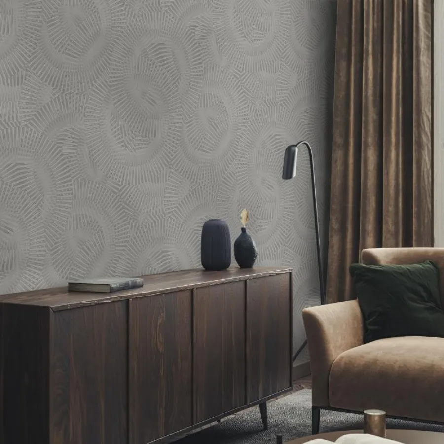 Adawall ICON kataloğuna ait 24103 Echoed Dimensions serisi, üst üste binen dairesel formlar ve ritmik çizgilerle mekâna modern bir derinlik kazandıran sofistike bir tasarıma sahiptir. Desenin tekrar eden katmanlı yapısı, duvar yüzeyinde optik bir hareket hissi oluşturarak sade alanlara bile mimari bir karakter ekler.