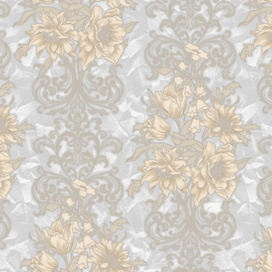 Sanatsal bir ihtişam sunan SEVEN 7805, rokoko stilinin zengin damask formlarını çiçek detaylarının zarif akışıyla birleştirerek duvarlarda görkemli ve sofistike bir atmosfer oluşturur. İnce işlenmiş kıvrımlı motifler, çiçeklerle bütünleşerek mekâna klasik bir derinlik ve aristokrat bir duruş kazandırır.