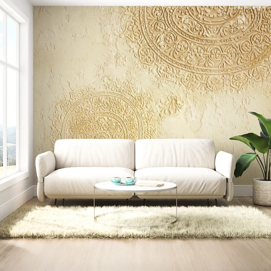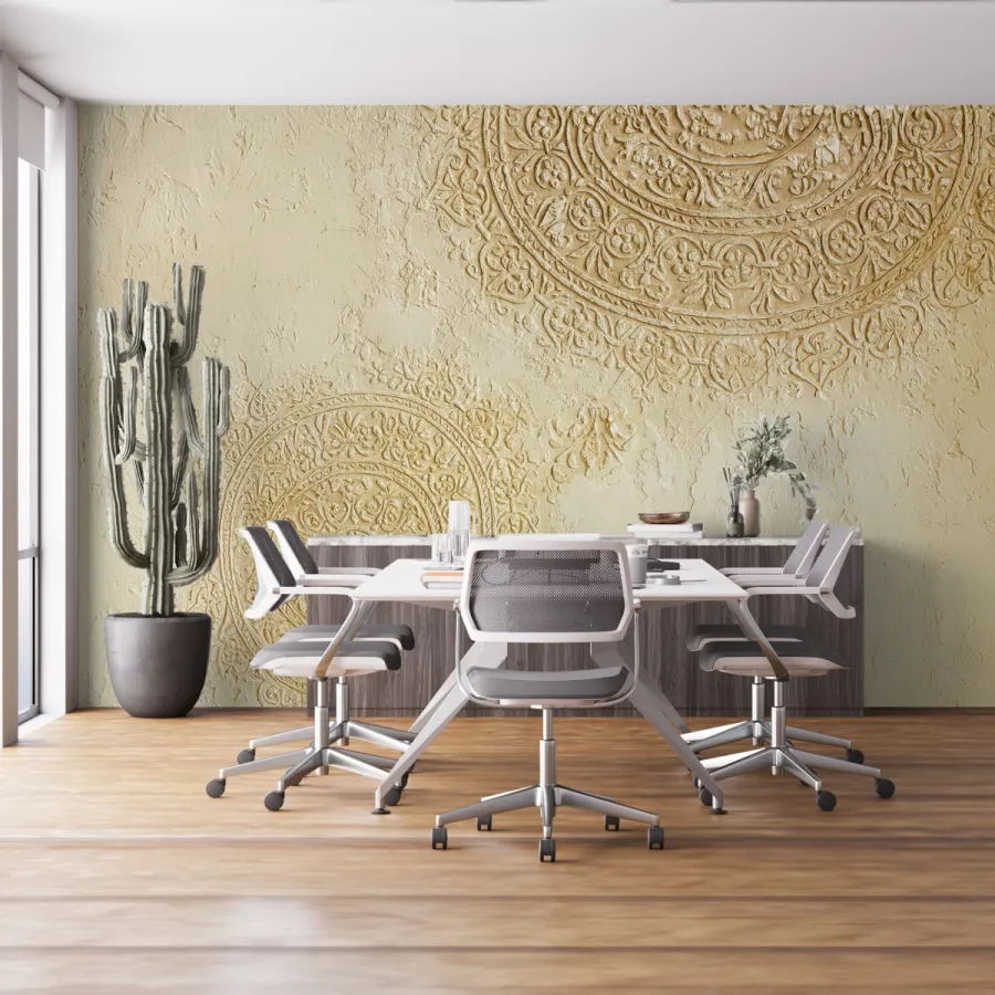 Bej tonlarının ihtişamını kabartmalı dokularla buluşturan bu duvar kağıdı, mekâna sanatsal bir zenginlik ve derinlik kazandırıyor. Geleneksel motiflerden ilham alan tasarımı, modern dekorasyon anlayışıyla harmanlanarak hem klasik hem de çağdaş mekânlara uyum sağlıyor. Işığın oyunlarıyla birlikte duvarlarda farklı gölgeler yaratan bu tasarım, mekâna lüks ve karakteristik bir hava katıyor. Evlerde salon, yemek odası ve giriş alanlarında; ofislerde ise prestijli bir dekorasyon unsuru olarak öne çıkar. Ayrıca otel lobileri, sanat galerileri, kafe ve restoranlar için de sofistike bir atmosfer yaratır.