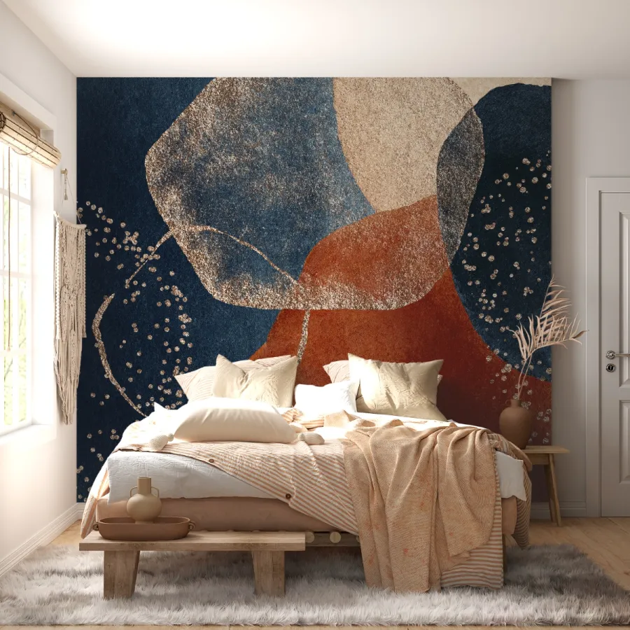 Derin lacivert gecenin sessizliğini, kızıl ateşin sıcak nefesiyle buluşturan bu soyut tasarım; mekâna hem cesur hem de sahne etkisi yaratan bir enerji taşır.