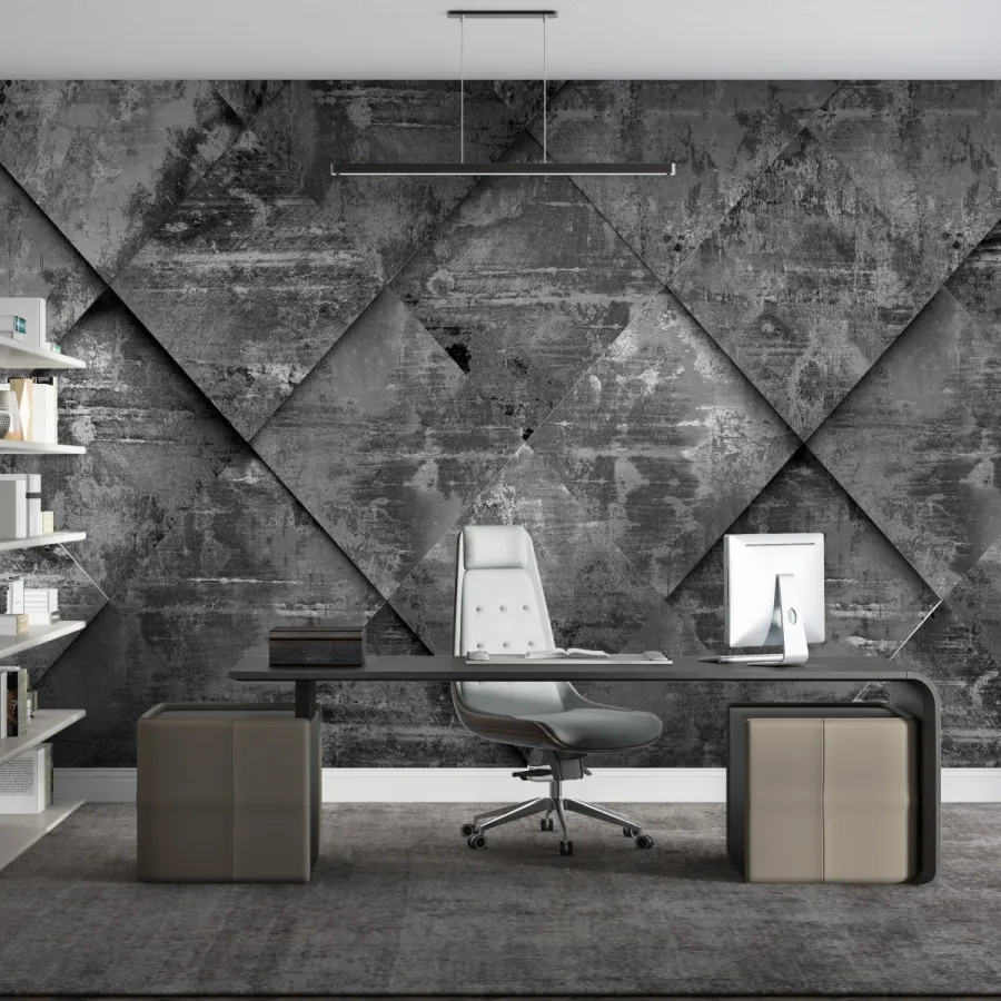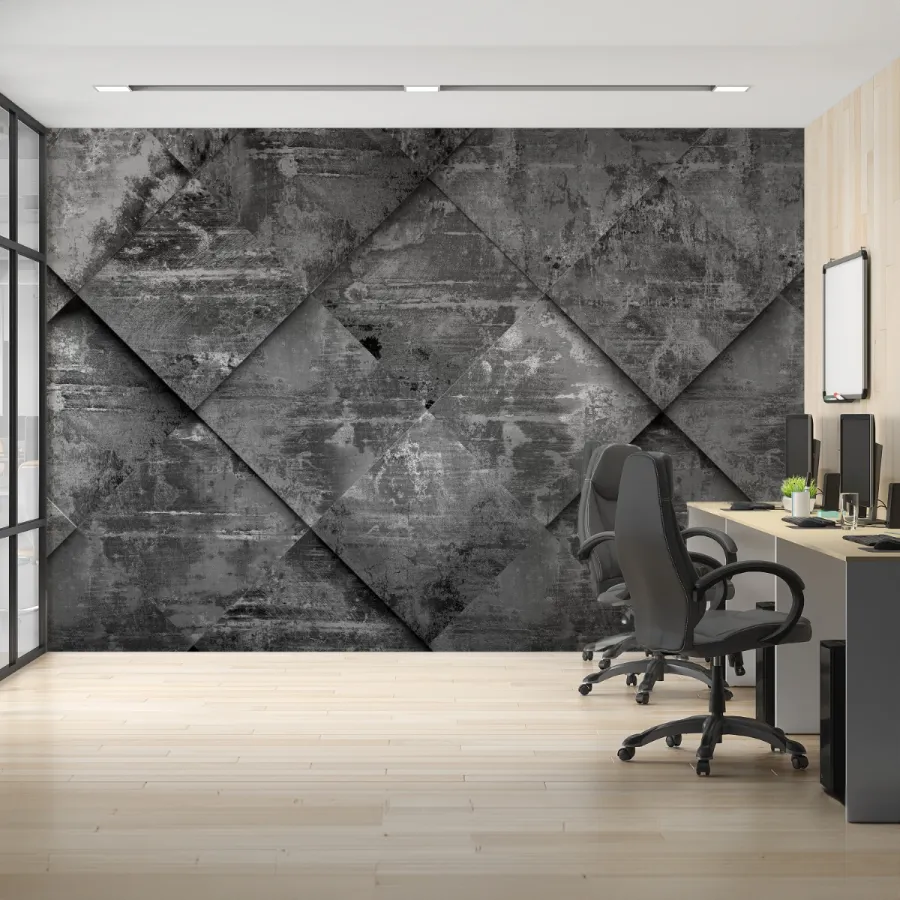 Modern mimarinin keskin çizgilerini yansıtan bu duvar kağıdı, betonun ham dokusunu geometrik yüzeylerle birleştirerek etkileyici bir derinlik hissi yaratır. Gri tonların katmanlı geçişleri, ışığın açısına göre değişen gölgelerle birlikte güçlü bir üç boyut etkisi oluşturur. Minimalist ama iddialı bu tasarım, ofis, çalışma alanı ve çağdaş yaşam mekânlarında endüstriyel estetiğin en sofistike halini sunar. Sert dokularla yumuşak ışığın dansı, mekâna modern bir güç ve profesyonel bir karakter kazandırır.