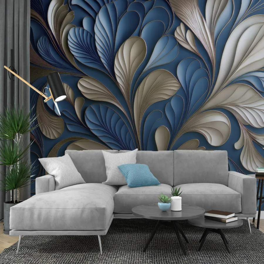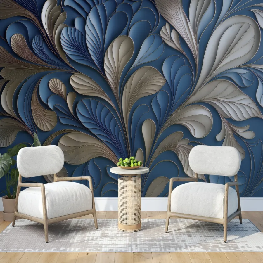 Doğanın akışkan hareketlerinden ilham alan bu eşsiz tasarım, lacivertin derinliğiyle bej tonlarının sıcak zarafetini harmanlar. Üç boyutlu kabartma etkisi veren soyut yaprak formları, duvarda adeta dalgaların kıvrımlı dansını canlandırır. Işığın geliş yönüne göre ton değiştiren yüzeyler, mekâna dinamik bir derinlik ve lüks bir atmosfer kazandırır. Modern sanatı doğanın zarif ritmiyle buluşturan bu tasarım, her bakışta büyüleyici bir görsel hikâye anlatır.