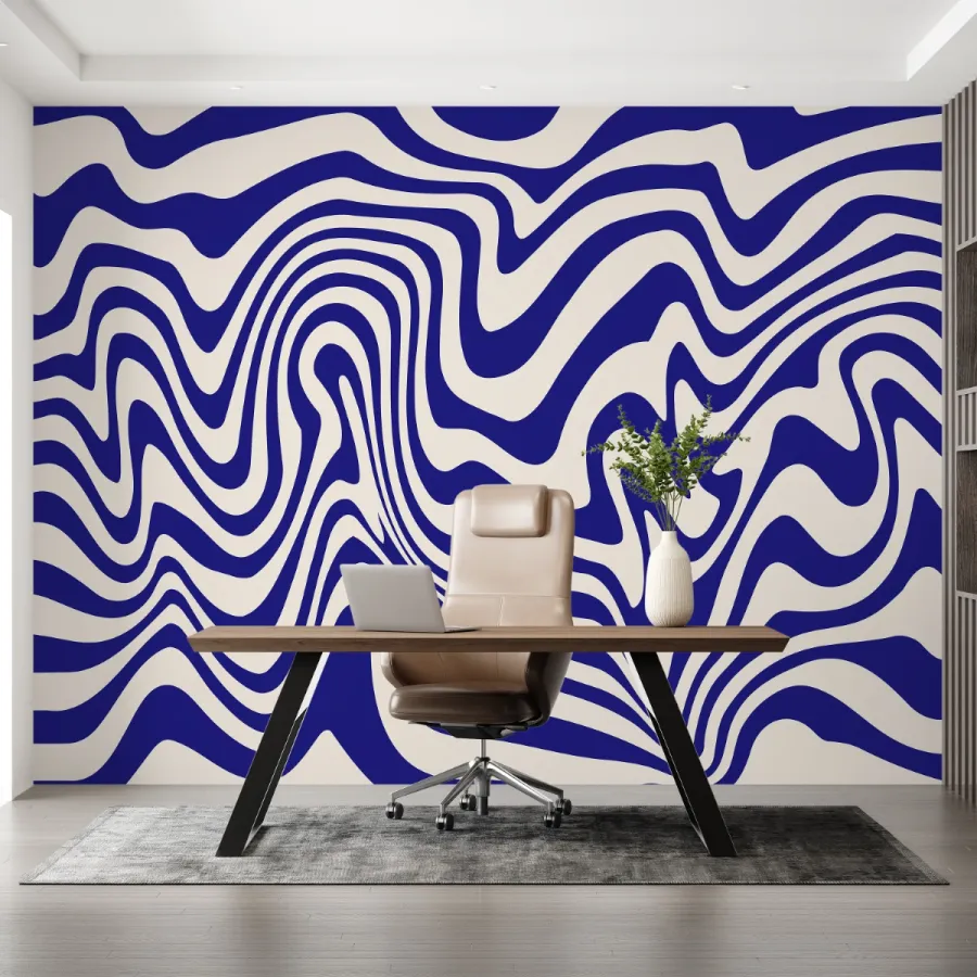 Op-Art Dalga – Lacivert Beyaz Optik Etki Modern Duvar Kağıdı