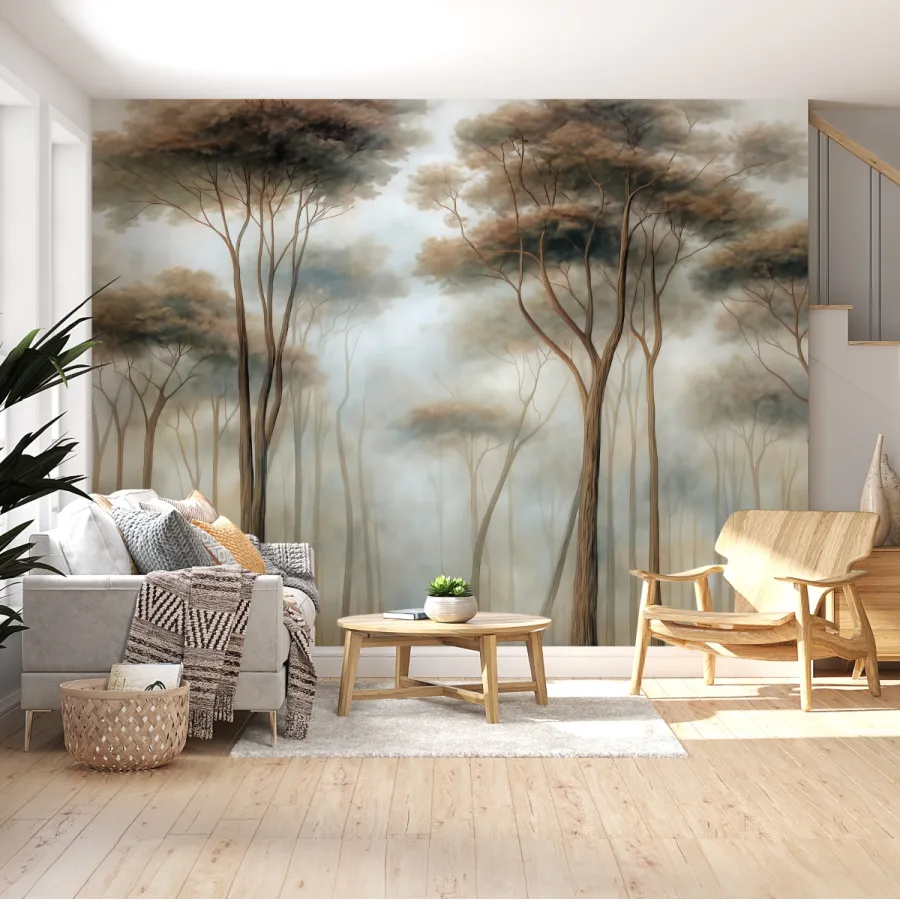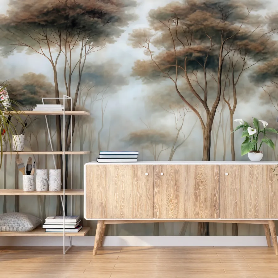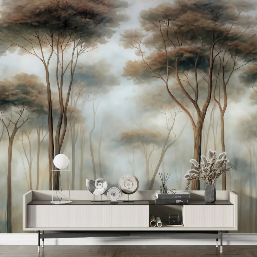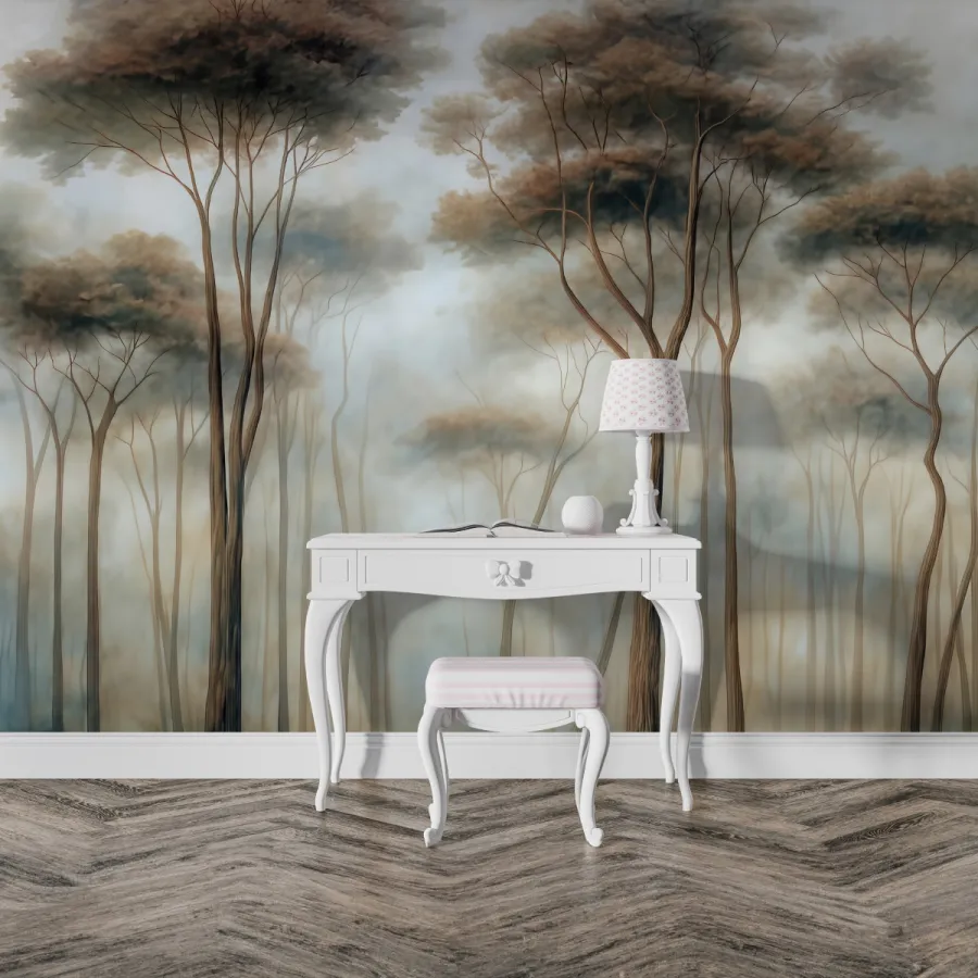 Sisli Orman Temalı Pastel Tonlarda Sanatsal Duvar Kağıdı
